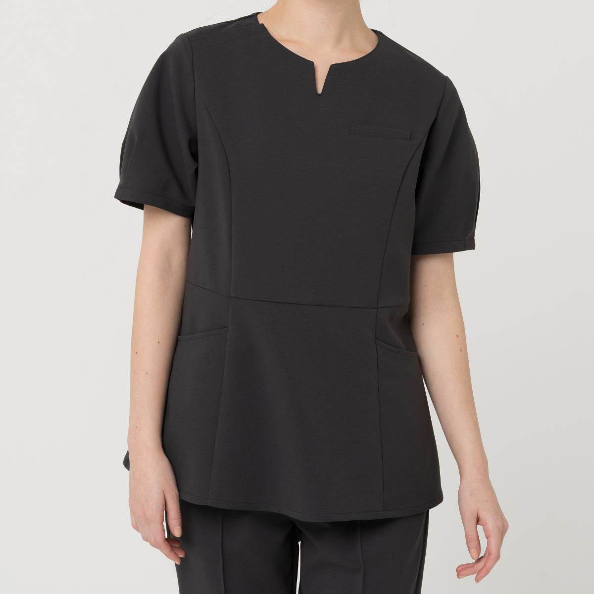 ですが、AOREのスクラブはお辞儀した時の胸元のあき具合や、着用した際のシルエットなど着用者に寄り添ってくれているので安心して着用できます。