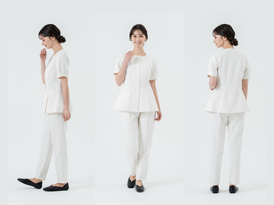 医療従事者は、診察、処置、患者様の誘導など、一日を通して多くの動作を行います。そのため、生地にストレッチ性があり、身体の動きを妨げないことは、スクラブを選ぶうえで必須の条件です。