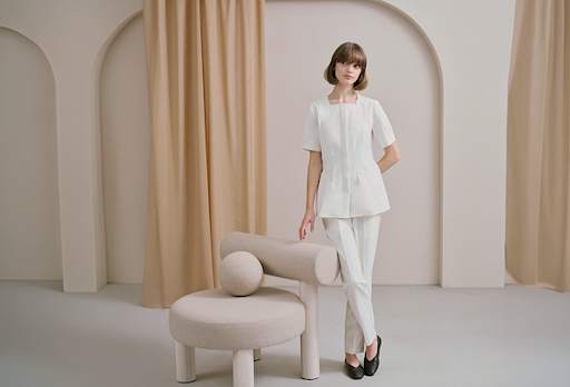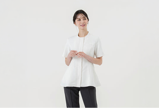 患者様が最初に接する受付スタッフは、クリニックの第一印象を決定づける存在です。そのため、親しみやすさのなかにも、プロとしての品位と信頼感を醸し出すユニフォームが求められます。直接的な施術を行うわけではないため、機動力よりも、清潔感や立ち姿の美しさを重視するのがポイントです。カッティングに工夫を凝らした、華やかな接客スタイルのデザインを選ぶとよいでしょう。