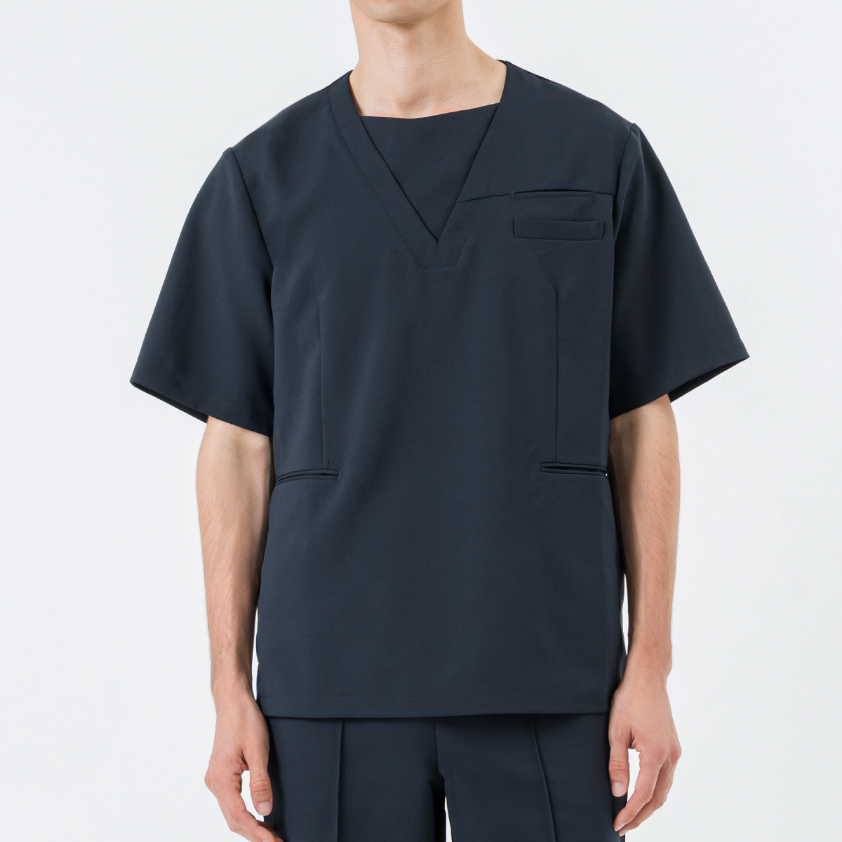 ですが、AOREのスクラブはお辞儀した時の胸元のあき具合や、着用した際のシルエットなど着用者に寄り添ってくれているので安心して着用できます。
