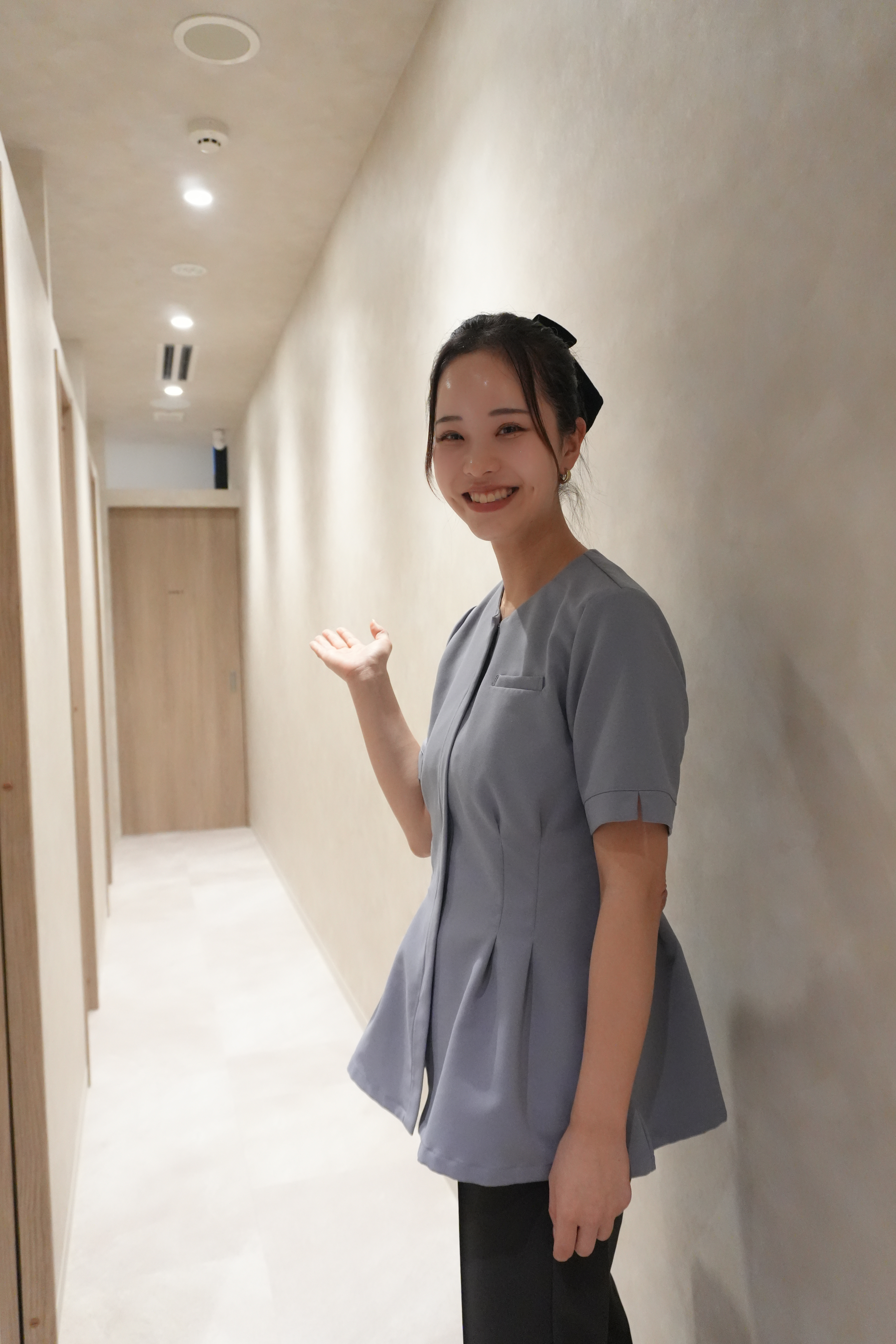 ブルーとチャコールの2色を着ているのですが、どちらの色味もクリニックの雰囲気にも合い、気に入っています。