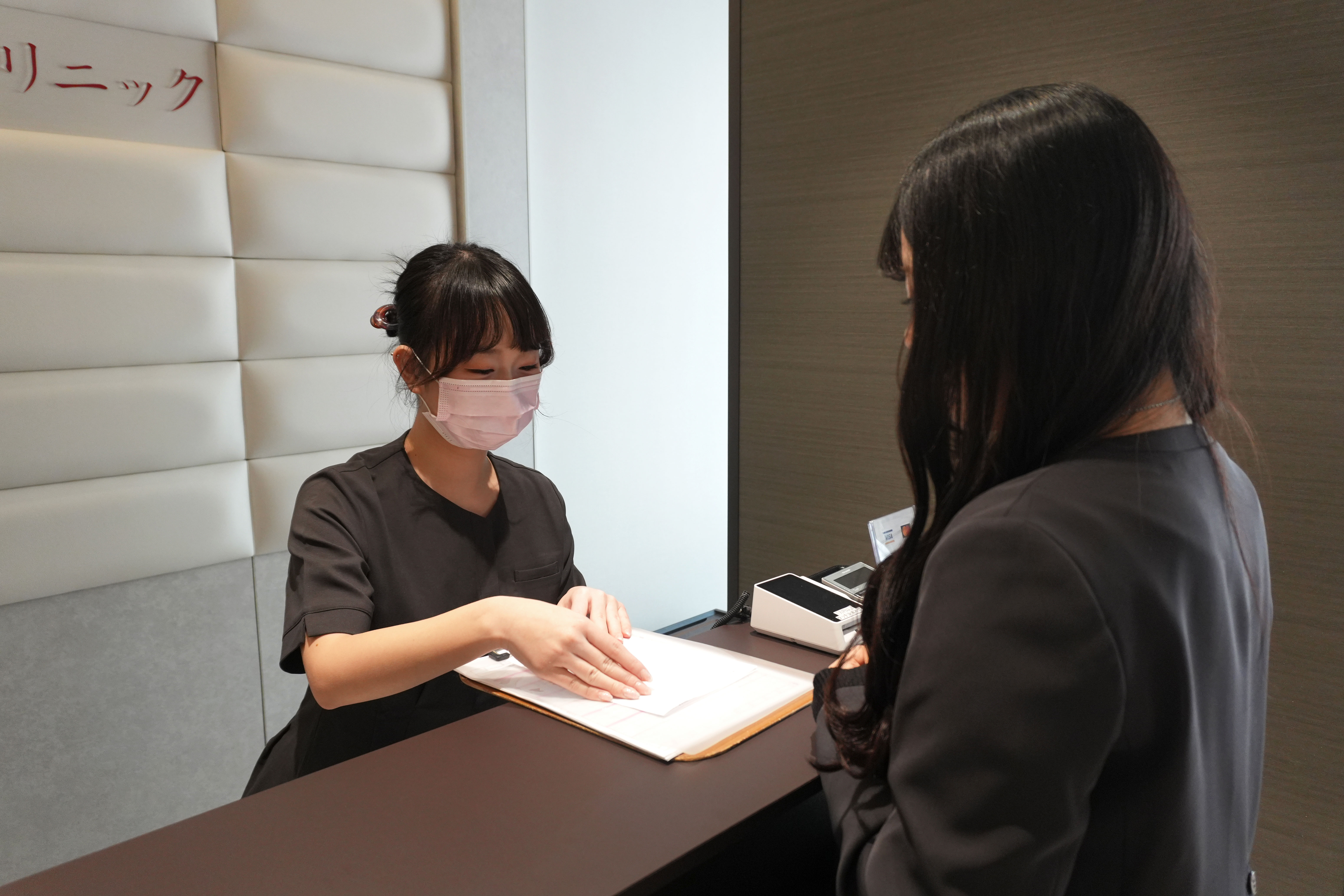 また、基本的にはスタッフで自由に制服を選べたのですが、もともとのユニフォームがワンピースだったこともあり、いきなりカジュアルっぽくなりすぎるとクリニックの印象が変わってしまうのではないかという不安要素もありました。ですが、AOREのユニフォームは、女性らしいフェミニンなシルエット・デザインで上品な印象のスクラブで、モデルチェンジするにあたって抱えていた不安要素も解消してくれたのが良かったです。
